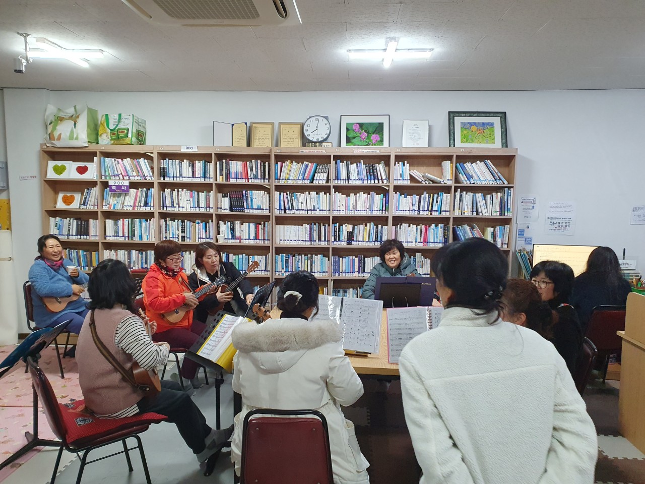 연미새마을작은도서관 재능기부동아리(오라해피우쿨렐레)예요 작년 한해동안 동아리 회원들이 매주 모여서 우쿨렐레를 배우고 노래하며 즐겁게 보내고있어요 올 한해도 화이팅!!!해서 열심히 배워볼께요