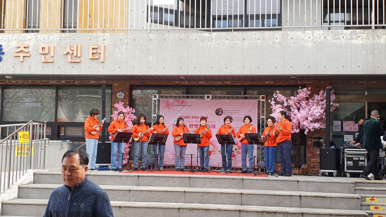 벚꽃축제장에서 저희 우쿨렐레팀이 공연을 했어요