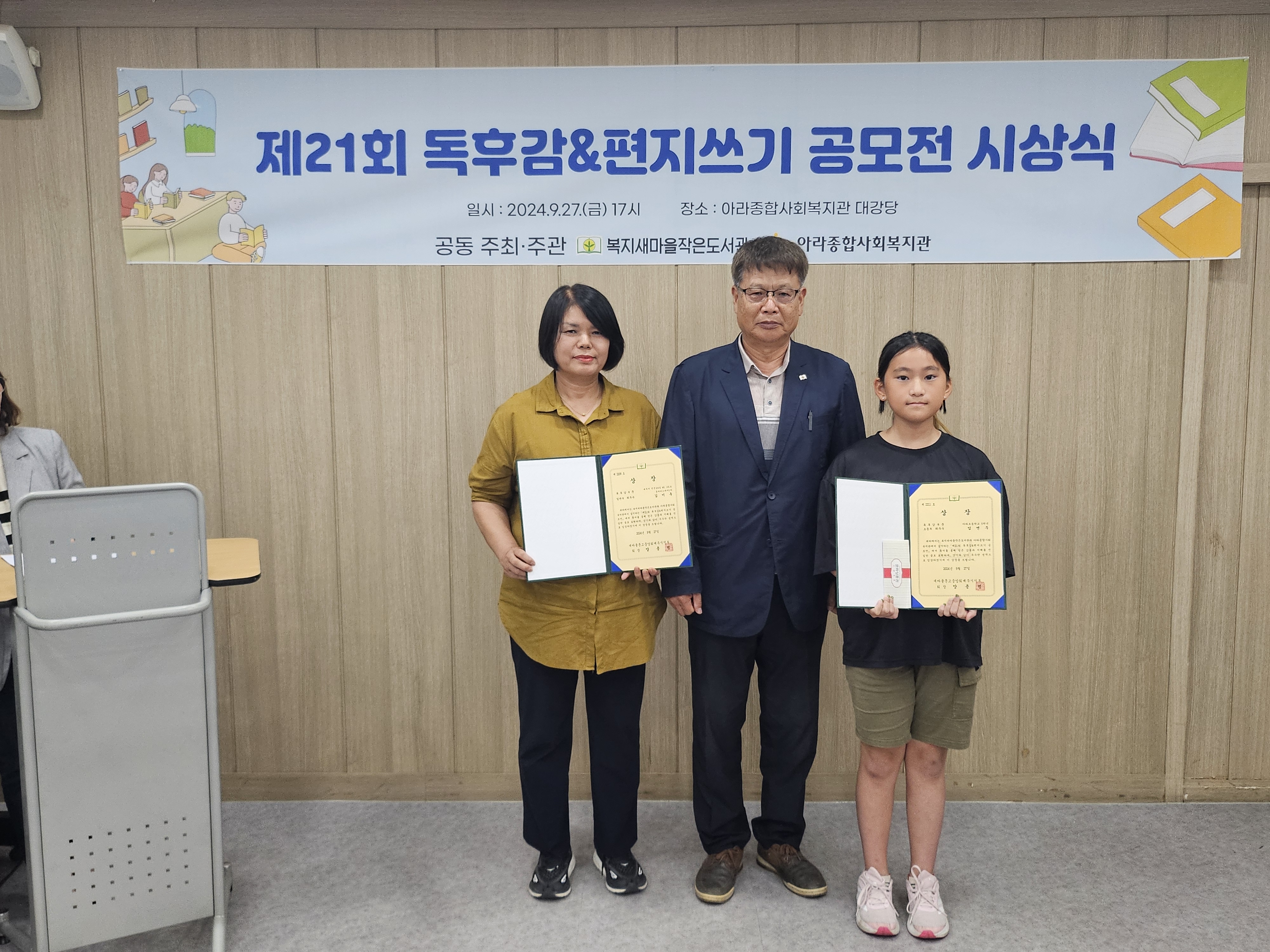 복지새마을작은도서관에서는 지난 9/27(금) 제21회 독후감&편지쓰기 시상식을 개최하였습니다.
