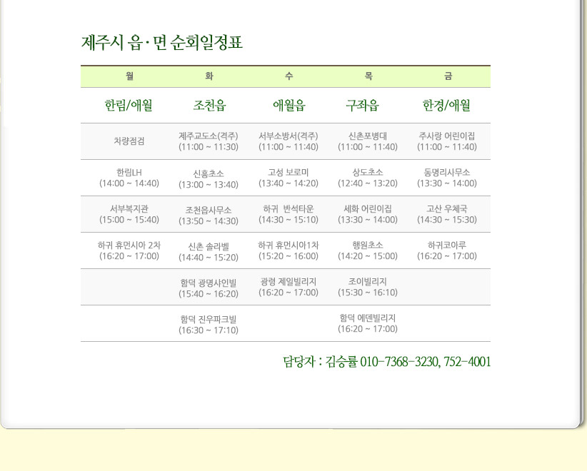HOME > 새마을이동문고 > 순회일정